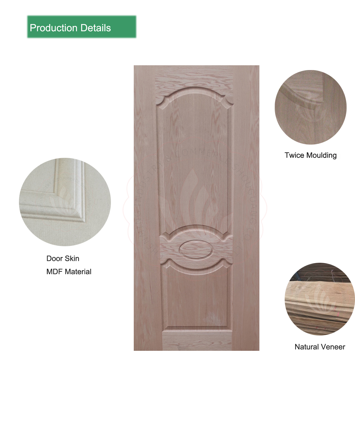 C). HDF door skin laminated with wood veneer.—Ash,Oak,Cherry,Walnut,Teak,etc