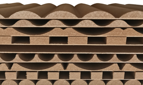 The flexibility can be enhanced by increasing the thickness of the MDF and the number of flutes or by using a thinner PVC or nylon mesh material. The final product may not have the same structural integrity as a traditional MDF panel, but can be used for decorative purposes.