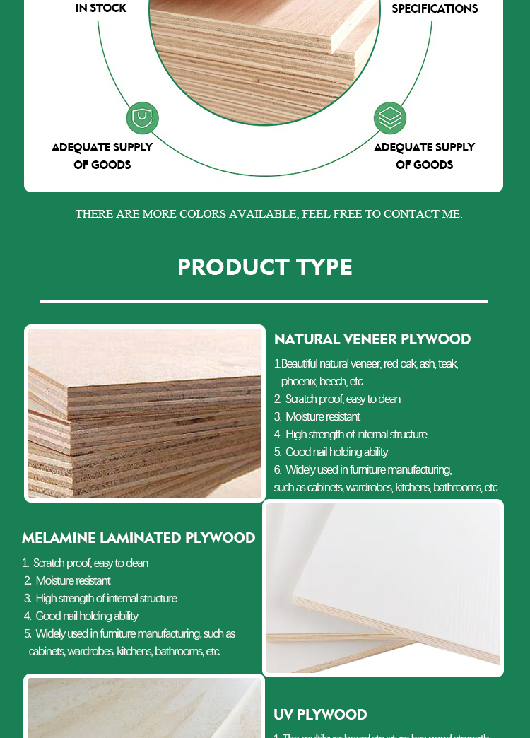 | Size: | 1220mm x2440mm(4×8),1250mmx2500mm,15mmx1830mm,